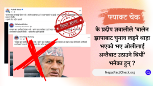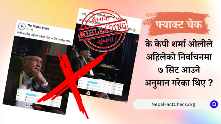 इकान्तिपुरमा प्रकाशित समाचारमा प्रत्यक्षतर्फ एक सिट पनि नजितेका पार्टीले राष्ट्रिय दलको मान्यता नपाउने भएकाले समानुपातिक सिटको बाँडफाँट नहुने दावी गरिएको छ। तर, नेपालफ्याक्टचेकले गरेको तथ्यजाँचमा...