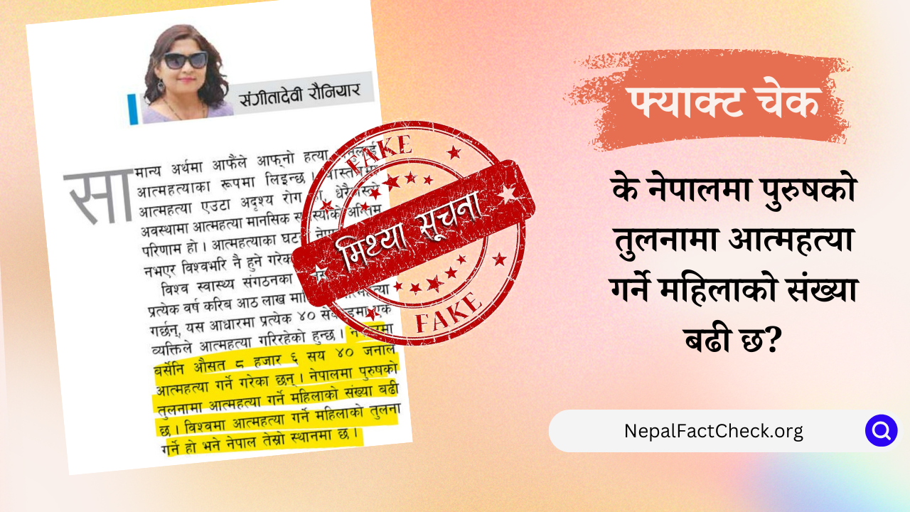 दावी २: “नेपालमा पुरुषको तुलनामा आत्महत्या गर्ने महिलाको संख्या बढी छ। ”