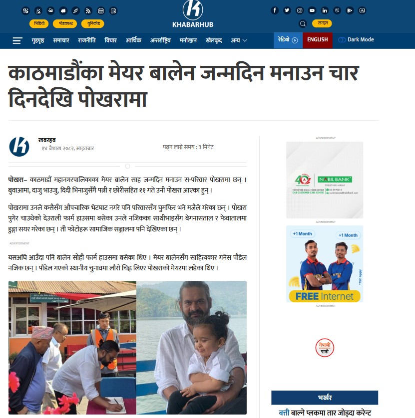 गण्डकी ट्राउट फार्म र बालेन की वर्ड राखेर गुगलमा सर्च गरी हेर्दा एउटा समाचार फेला पऱ्यो। खबरहबमा गत बैशाख १४ गते प्रकाशित समाचारमा बालेन जन्मदिनका लागि पोखरामा रहेको उल्लेख छ। समाचार अनुसार उनी गण्डकी रेन्बो ट्राउट फार्ममा पनि पुगेका थिए। ट्राउट फार्मका सञ्चालक लक्षिन र अमृत गुरुङ्गले मेयर शाहको तस्बिर सार्वजनिक गरेका हुन्।