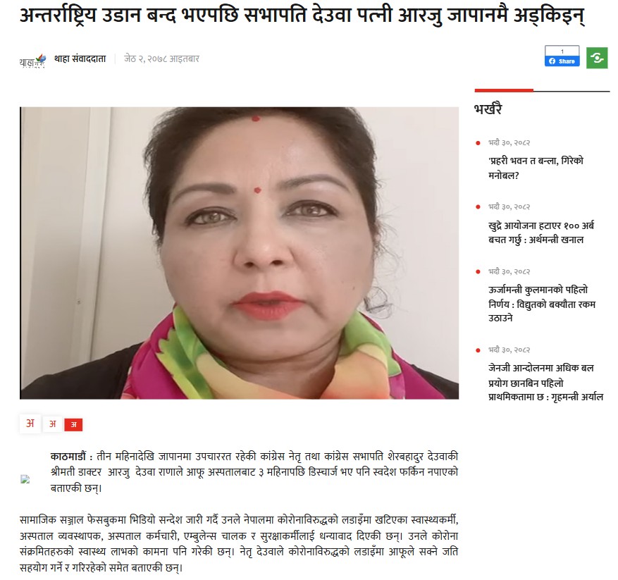 हेर्नुस् २०७८ जेठ २ गते थाहाखबर अनलाइनमा प्रकाशित समाचारको स्क्रिनसट-