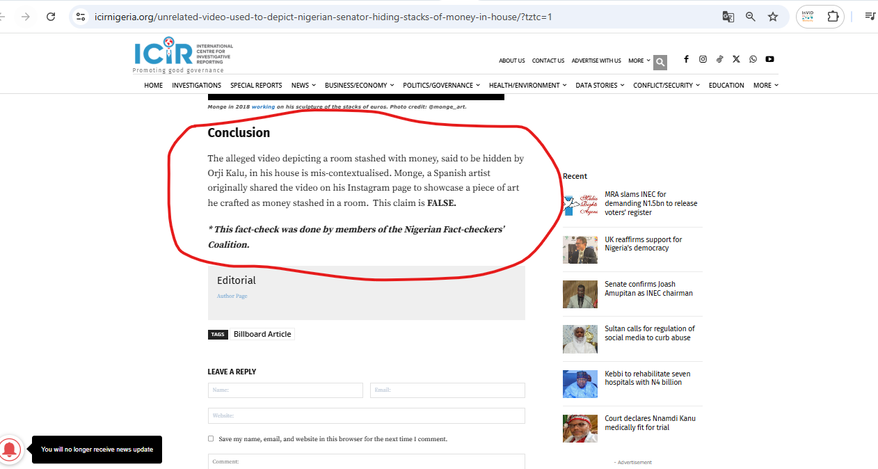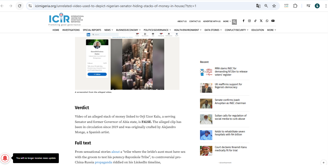 यो भिडिओ भारतमा मात्रै भाइरल भएको होइन, अरु देशमासमेत भ्रम फैलाउन प्रयोग भएको भेटियो। नाइजेरियाको दक्षिणपूर्वी भागमा रहेको अबिया राज्यका पूर्व गभर्नर ओर्जी उजोर कालुको घरको कोठामा फेला परेको कोठामा नगदको थुप्रो भनेर सन् २०२२ मा भ्रम फैलाउने काम भएको थियो ।