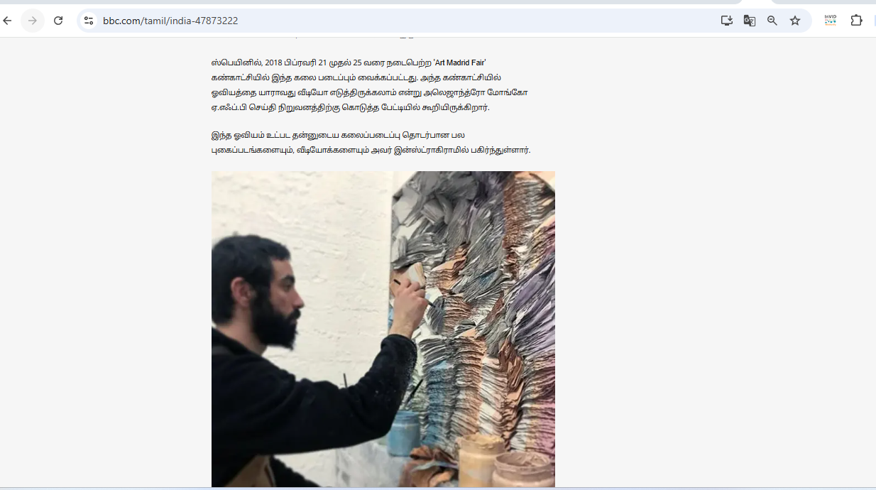 बीबीसी तमिलले गरेको तथ्यजाँचलाई गुगल ट्रान्सलेटबाट अङ्ग्रेजीमा अनुवाद गरी पढ्ने क्रममा यो भिडियोमा देखिएको पैसाको थुप्रो वास्तवमा कला (आर्ट) रहेको खुल्यो। यो काठको बोर्डमा पेन्सिलले कोरेको चित्र रहेछ। यो स्पेनी कलाकार अलेजान्ड्रो मोंगेले कोरेको चित्र हो। यो कला स्पेनमा भएको एक प्रदर्शनीमा राखिएको थियो। बीबीसी तमिलले कलाकारसहितको तस्बिरसमेत सार्वजनिक गरेको छ। तस्बिरमा कलाकार अलेजान्ड्रोले तस्बिर बनाइरहेको देखिन्छ ।