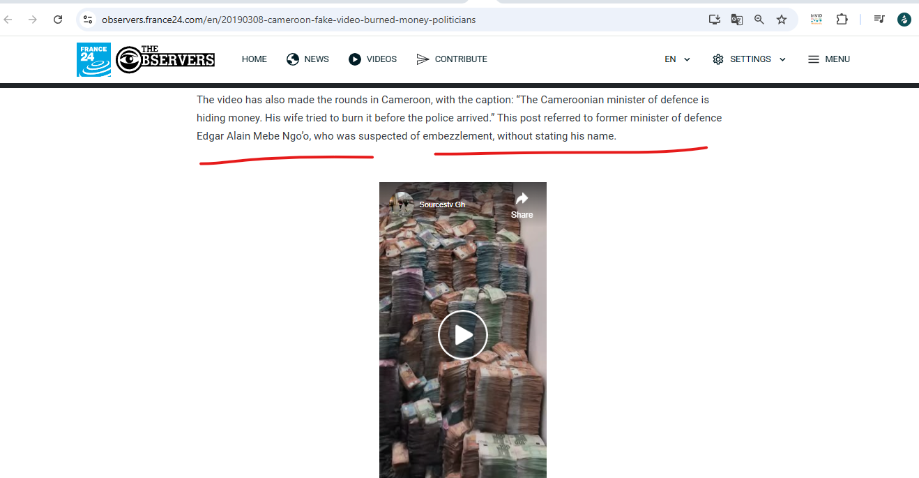 यो भिडिओ क्यामरुनमा पनि यसैगरी भाइरल बनाइएको थियो । क्यामरुनका एक पूर्व रक्षामन्त्रीले हिनामिना गरेको नोट जलाएको भनेर भ्रम फैल्याउने प्रयास भएपछि द अब्जर्भरले यसबारे तथ्यजाँच गरेको थियो ।