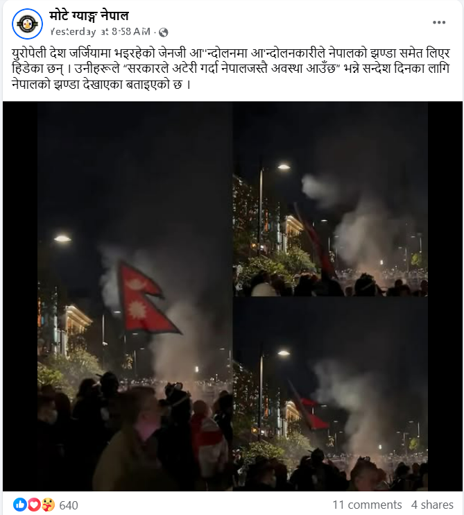 नेपालका अधिकांश फेसबुक पेजहरुले जर्जियामा पनि जेन जी आन्दोलन भएको दावी गरेका छन्।