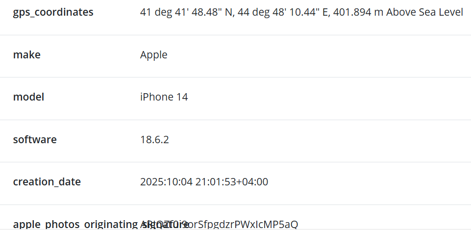 आइफोन १४ बाट खिचिएका ती भिडियो सम्पादन भएको हामीले पाएनौँ। अक्टोबर ४ तारिखको राति ९ बजे वरपर खिचिएका ती भिडियोहरुको जिपिएस लोकेसन जाँच्दा त्यो जर्जियाको राजधानी टुबिलिसीमा देखियो।