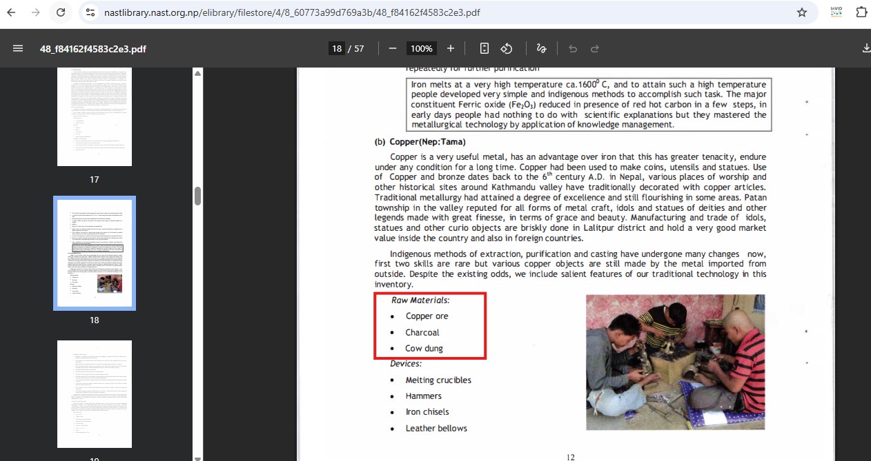 नेपाल एकेडेमी अफ साइन्स एण्ड टेक्नोलोजी (नास्ट) ले २०७० सालमा सार्वजनिक गरेको रिपोर्टमा कपर अर्थात तामाको भाँडा बनाउने विधिबारे पनि उल्लेख गरिएको छ । तामाको भाँडा बनाउँदा आवश्यक पर्ने कच्चा पदार्थमा पनि सीसा (लिड) आवश्यक पर्ने कुरा उल्लेख गरिएको छैन ।