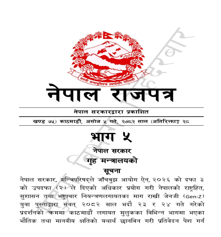 समाचारमा चर्चा गरिएको आयोग भने जाँचबुझ आयोग ऐन २०२६ बमोजिम नेपाल सरकारले गठन गरेको हो।