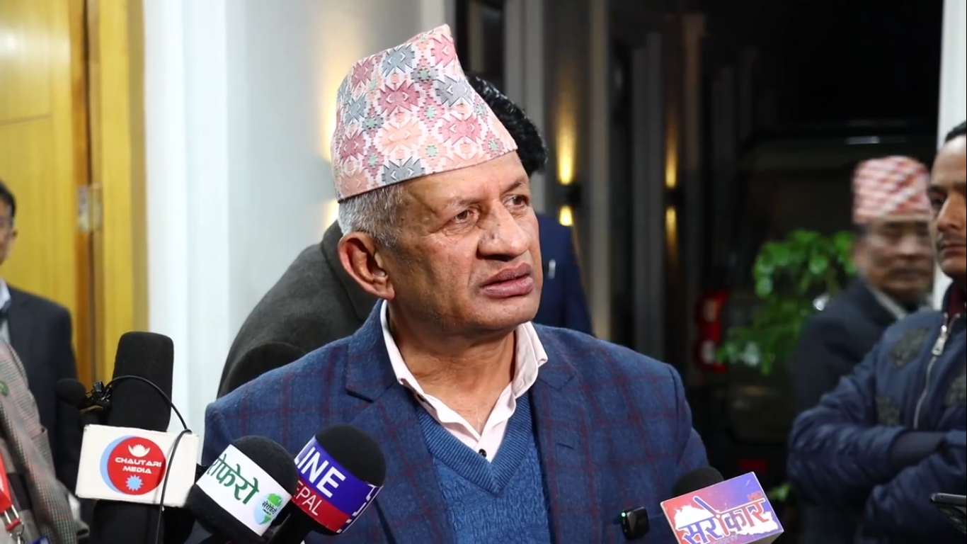 ज्ञवालीले गत मङ्सिर ३ गते सञ्चारकर्मीहरूसँग कुराकानी गर्दाको तस्वीर :