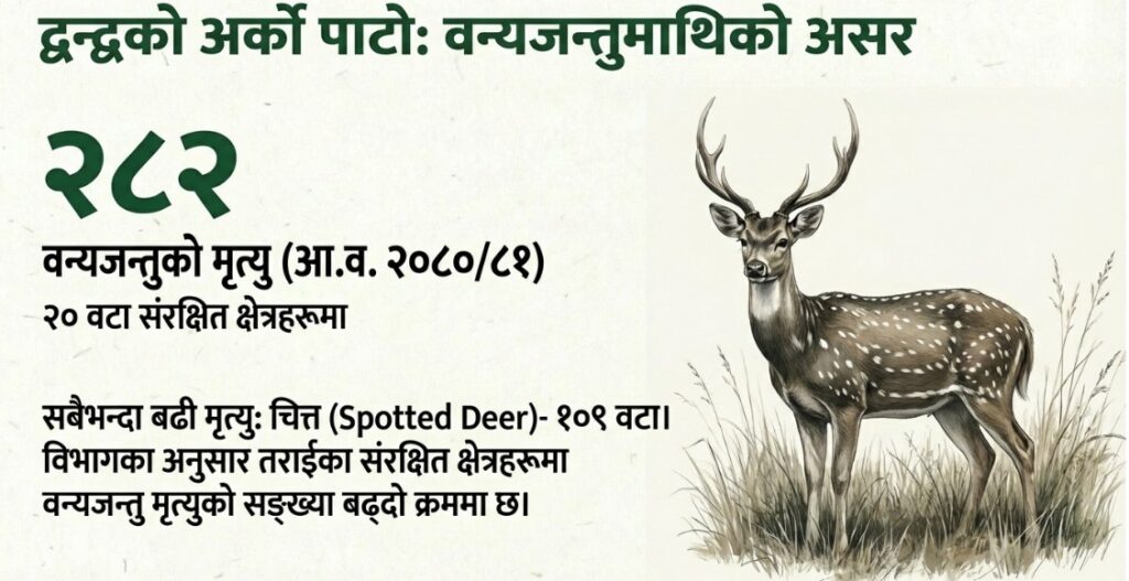 पछिल्ला केही वर्षयता नेपालमा मानव–वन्यजन्तु द्वन्द्व अकल्पनीय रूपमा बढ्दै गएको छ। बाघ, हात्ती, गैँडा, चितुवा र भालुजस्ता जङ्गली जनावरसँग मानिसको जम्का भेट बढ्दै गएको छ। यसका कारण मानिसको ज्यान जाने, घाइते हुने, पशुधन मर्ने र खेतबारी नष्ट हुने घटना निरन्तर बढिरहेका छन्।