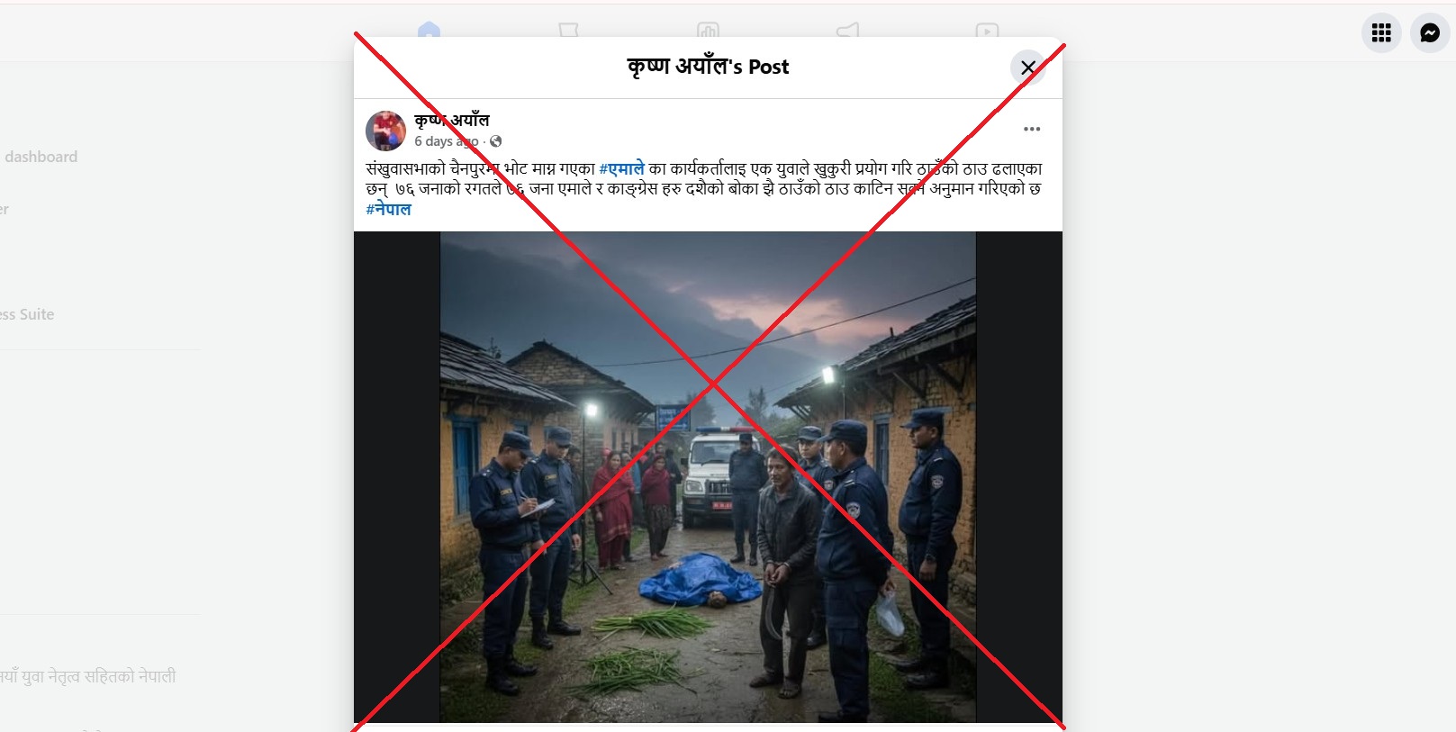 हेर्नुहोस्, कृष्ण अयाँल नामक फेसबुक एकाउन्टमा राखिएको पोस्टको स्क्रिन सट :