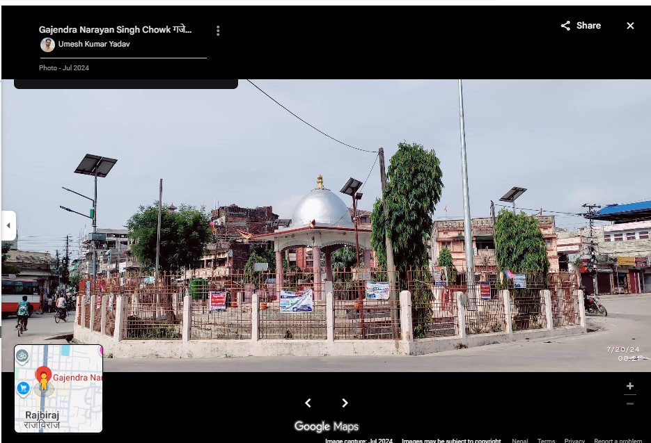 त्यसपछि हामीले मधेश आन्दोलनका प्रणेता गजेन्द्र नारायण सि‌ंहको सालिक रहेको ठाउँको भूगोल हेर्नका लागि गुगल स्ट्रिट भ्यूको सहायता लियौँ।
