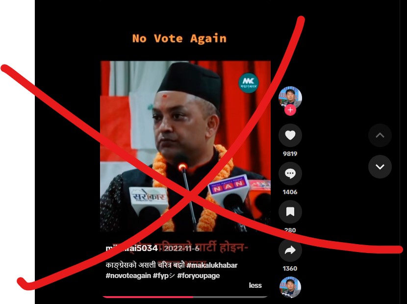 हालको भाइरल भिडियोमा केही नदेखिए पनि पुरानो भाइरल भिडियोमा मकालुखबरको लोगो पनि देखिन्छ। हामीले ‘कांग्रेस गरिब, सुकुम्बासीको पार्टी होइन कीवर्ड प्रयोग गरेर गुगल एडभान्स सर्च गरेर हेर्‍यौँ। त्यसको नतिजामा नेवार पोशाकमै मकालु खबरको युट्युब  च्यानलमा यही क्लिपसहितको १ मिनेट ५० सेकेन्डको भिडियो भेटियो ।