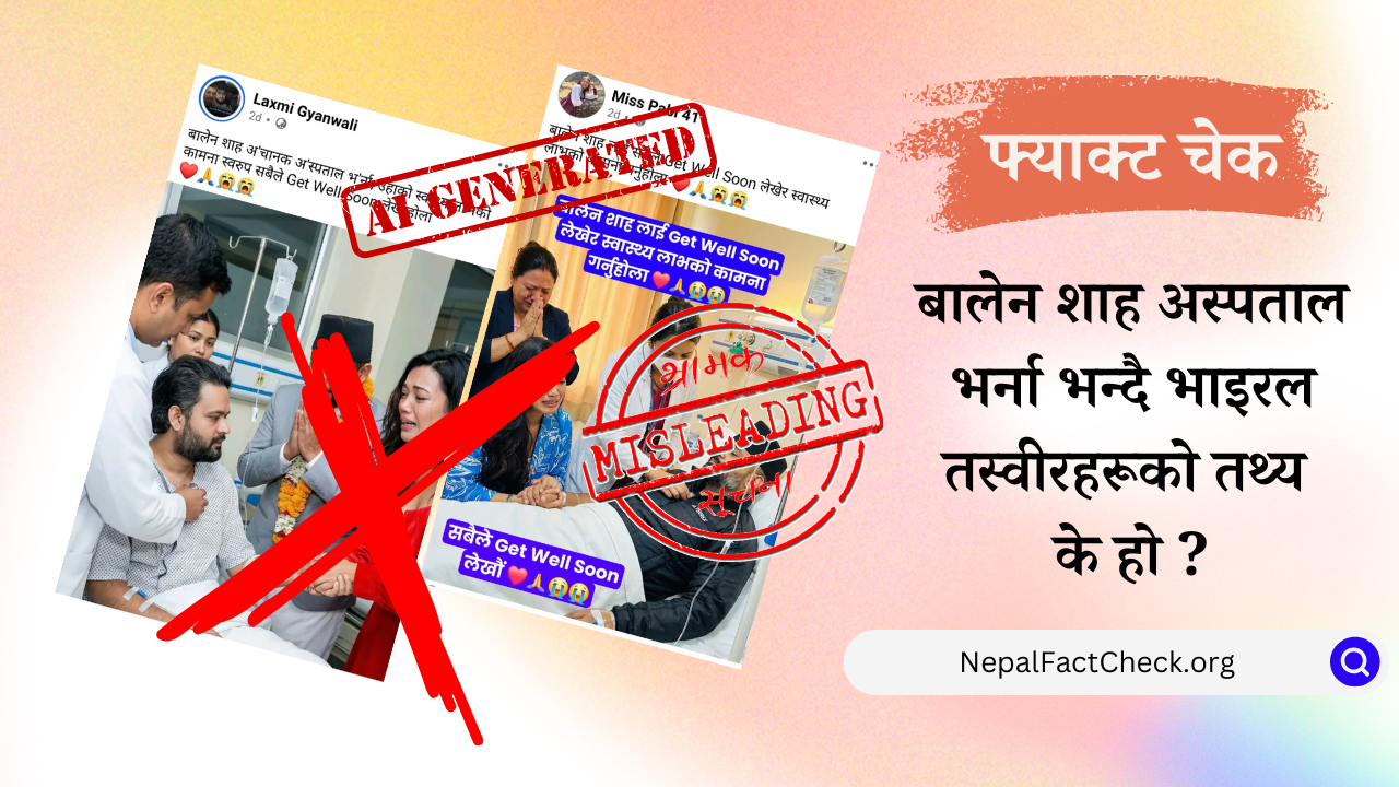 तर हाम्रो तथ्य जाँचमा एआईमार्फत निर्मित भ्रामक तस्बिर बनाएर सार्वजनिक गरिएको पुष्टि भएको छ । बालेनलाई प्रचारप्रसार अभियानका क्रममा सामान्य बिरामी ‘ट्राभल विकनेस’ भएको हो तर दाबी गरिए जस्तो गम्भीर बिरामी भएर उनलाई अस्पताल भर्ना गरेर राखिएको होईन ।