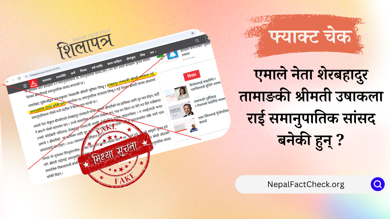 तर नेपालफ्याक्टचेकले गरेको तथ्यजाँचमा उषाकला राईको नाम समानुपातिक बन्दसूचीमा परेको भए पनि सांसद भने नबनेको पुष्टि भएको छ।