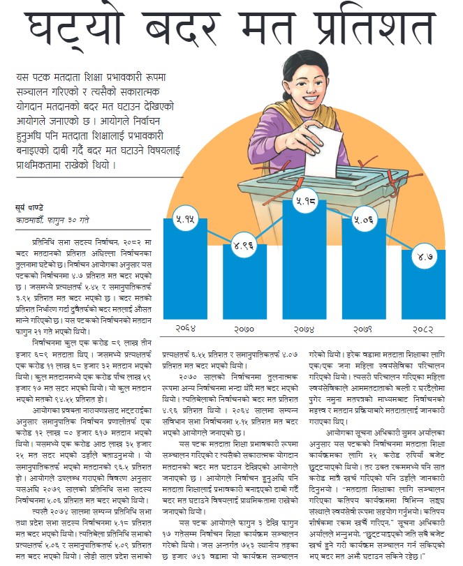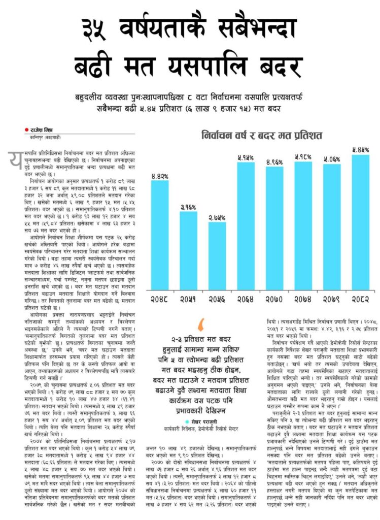 बदर मत ‘३५ वर्षयताकै सबैभन्दा बढी’ कि ‘घट्यो’ ? कान्तिपुर र गोरखापत्रका दावी किन फरक?