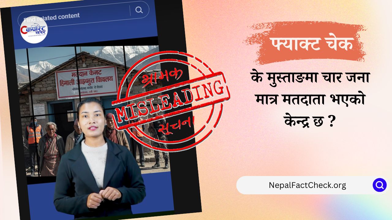 मुस्ताङ जिल्लाको एक मतदान केन्द्रमा ४ जना मात्र मतदाता रहेको दावीसहितको भिडियो सामाजिक सञ्जाल टिकटकमा भाइरल भइरहेको छ।