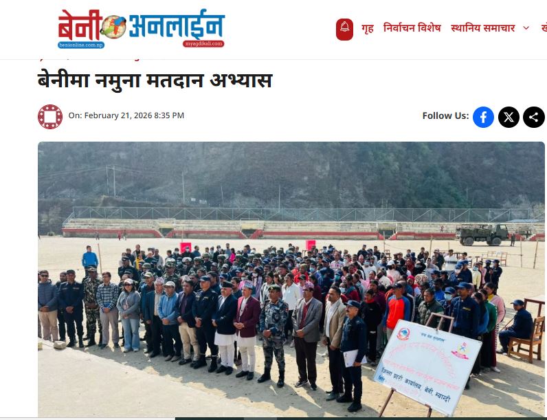 त्यस्तै, ढोरपाटन न्यूजले पनि ‘निर्वाचन सफल बनाउन म्याग्दीमा नमुना अभ्यास’ शीर्षकमा समाचार प्रकाशित गरेको भेटियो। उक्त समाचारमा निर्वाचनलाई भयरहित रूपमा सम्पन्न गराउन तथा आकस्मिक अवस्थालाई नियन्त्रण गर्न सुरक्षा अभ्यास गरिएको उल्लेख गरिएको छ।