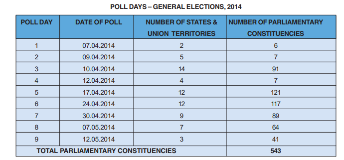 त्यसपछि हामीले भारतमा भएको सन् २०१४ को चुनाव तालिका पनि खोजेका छौँ। भारत सरकारको परराष्ट्र मन्त्रालयमा भेटिएको निर्वाचन तालिका अनुसार