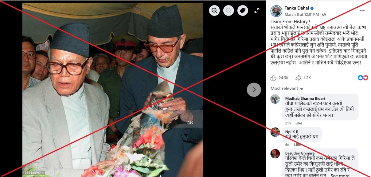 तर नेपालफ्याक्टचेकले गरेको तथ्यजाँचमा उक्त दाबी भ्रामक रहेको पुष्टि भएको छ। २०५६ सालको निर्वाचनपछि घोषणा अनुसार कृष्णप्रसाद भट्टराई नै प्रधानमन्त्री बनेका थिए। यद्यपि, केही समयपछि उनलाई हटाएर कोइराला प्रधानमन्त्री भने बनेका हुन्।