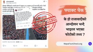 हिन्दुराष्ट्र र राजसंस्था पुनः स्थापनाका लागि गरिएको आन्दोलनको फोटो भन्दै धैरै भिडभाड देखिने फोटोहरु सामाजिक सञ्जालमा भाइरल भइरहेको छ। भाइरल फोटोमा धैरै भिडभाड देखिन्छ र...