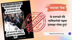 नुवाकोटकी एक महिलाले पाँच जना बच्चा जन्माएको दावी गरिएको पोस्ट अहिले सामाजिक सञ्जालमा भाइरल भइरहेको छ। तर, हाम्रो तथ्यजाँचले यो दावी भ्रामक रहेको ठहर गरेको...