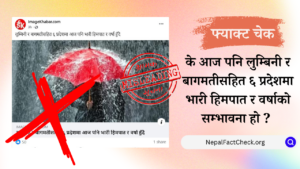 इमेज खबरले बुधबार बिहान ‘लुम्बिनी र बागमतीसहित ६ प्रदेशमा आज पनि भारी हिमपात र वर्षा हुँदै’ शीर्षकमा समाचार प्रकाशन गरेको छ। तर, हाम्रो तथ्य जाँचले...