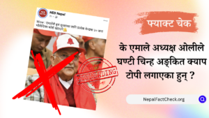 नेकपा (एमाले)का अध्यक्ष केपी शर्मा ओलीले घण्टी चिन्ह अङ्कित क्याप लगाएको फोटो अहिले सामाजिक सञ्जालमा भाइरल बनेको छ । तर, हाम्रो तथ्य जाँचले भने उक्त...