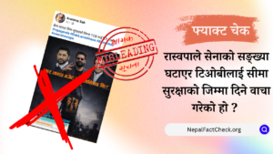 सामाजिक सञ्जालमा राष्ट्रिय स्वतन्त्र पार्टी (रास्वपा)ले सेनाको सङ्ख्या घटाएर ‘तिब्बत ओरिजिनल ब्लड (टिओबी)’लाई सीमा सुरक्षाको जिम्मा दिने गरी वाचा पत्र ल्याएको दाबी गरिएको छ। तर,...