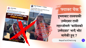 प्रतिनिधिसभा सदस्य निर्वाचनका लागि हुम्लाबाट रास्वपा उम्मेदवार टासी ल्हान्जोमले 'म कांग्रेसको उम्मेदवार' भनेर बोलेको दावीसहितको भिडिओ सामाजिक सञ्जालमा फैलिएको छ। तर, हामीले गरेको तथ्य जाँचमा...