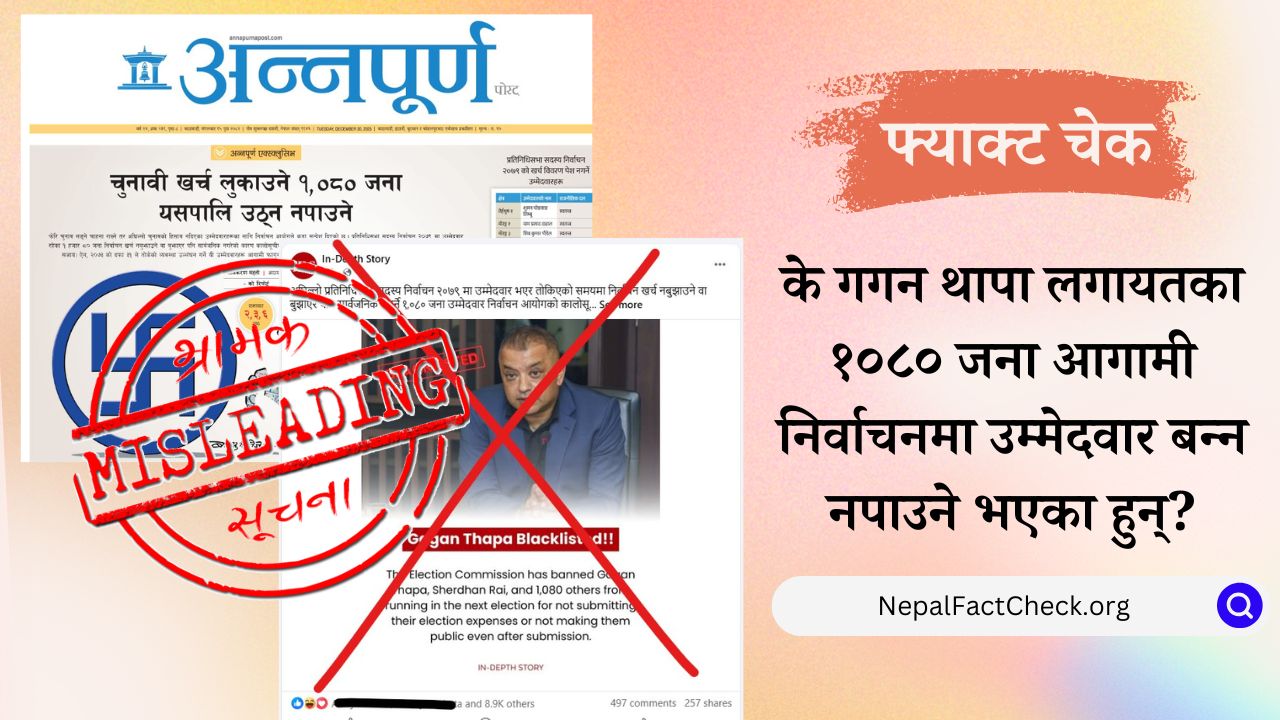अन्नपूर्ण पोस्ट राष्ट्रिय दैनिकमा 'चुनावी खर्च लुकाउने एक हजार ८० जना चुनाव उठ्न नपाउने' दावी गरिएको समाचार मंगलबार प्रकाशित भएपछि विभिन्न सामाजिक सञ्जाल पेज र...
