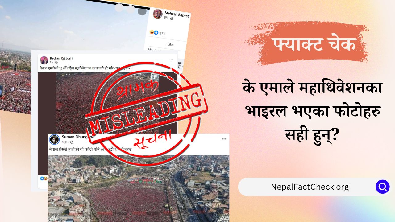 नेकपा एमालेको ११ औँ राष्ट्रिय महाधिवेशनमा भारतको झण्डा प्रयोग भएको दावी गर्दै एउटा फोटो भाइरल भएको छ। तर हाम्रो तथ्यजाँचले फोटो सम्पादन गरेर भ्रम फैल्याउने...